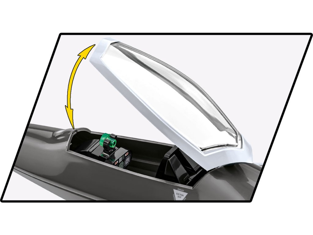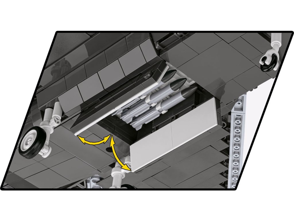 Letoun se skládá z 695 prvků, které mají stálobarevné potisky. Pro tento model jsme vyvinuli zcela nové prvky charakteristické pro F-22: příď letounu s kabinou a vertikálními stabilizátory. Model je dokonale zpracovaný a hladký stejně jako jeho skutečný protějšek s technologií STEALTH. Sada obsahuje otevírací kabinu, do které můžete umístit detailní figurku pilota s kyslíkovou maskou. Podvozek letounu lze také snadno demontovat, aby se model lépe vystavil na přiloženém stojánku, který obsahuje také plaketu s vytištěným názvem letounu a americkou vlajkou. V otevíracím poklopu najdete bomby. Detailní model legendy nebes je skutečnou lahůdkou pro sběratele a nadšence do vojenské techniky a stavění modelů. Díky použití vysoce kvalitního ABS a lehké konstrukci má náš model vlastnosti technologie stealth a je pro radary nezjistitelný, stejně jako skutečný model.