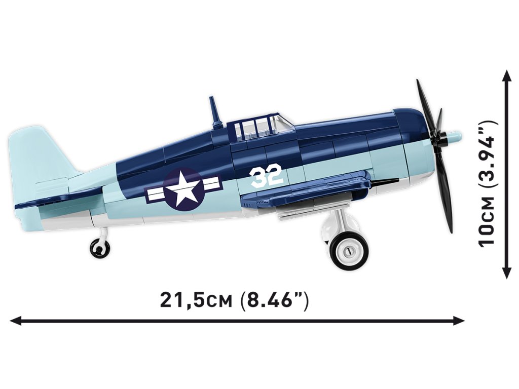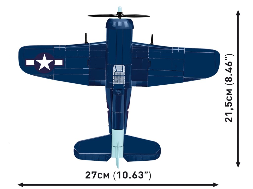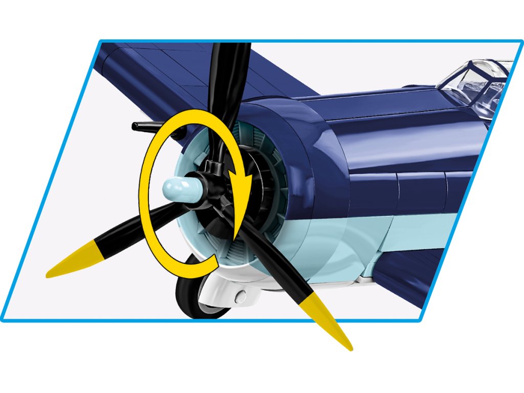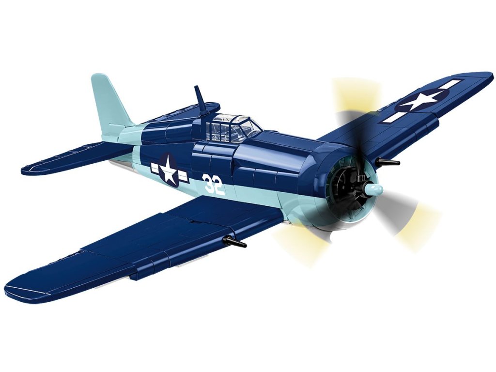 Z 235 vysoce kvalitních prvků si můžete postavit krásný model tohoto ikonického letounu. Letoun je vyroben z kostek v tmavě modré, světle modré a bílé barvě. Přesně tento nátěr měly letouny amerického námořnictva! Navíc má letoun pohyblivou vrtuli a odnímatelný podvozek. Tento model je ideální pro všechny fanoušky letectví a ty, kteří se zajímají o válku v Pacifiku.