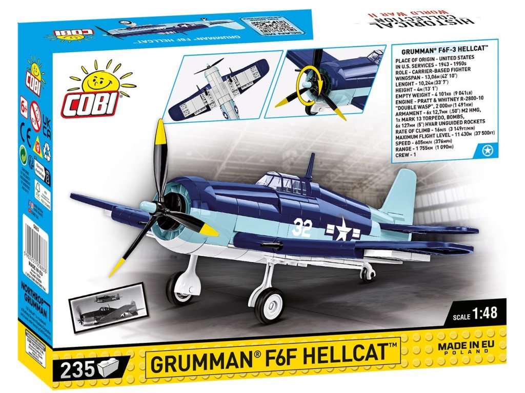 Letoun F6F Hellcat byl navržen jako reakce na japonské stíhačky Mitsubishi A6M Zero. Vyznačoval se pevnou konstrukcí, vysokou palebnou silou a snadnou pilotáží, díky čemuž byl v boji mimořádně efektivní. Tento letoun sehrál klíčovou roli v bitvě u Midway, bitvě u Leyte a mnoha dalších kampaních v Pacifiku. Byl jedním z hlavních faktorů dominance amerického letectva nad Japonci. Nyní bude tato tichomořská legenda k dispozici také v kolekci COBI!