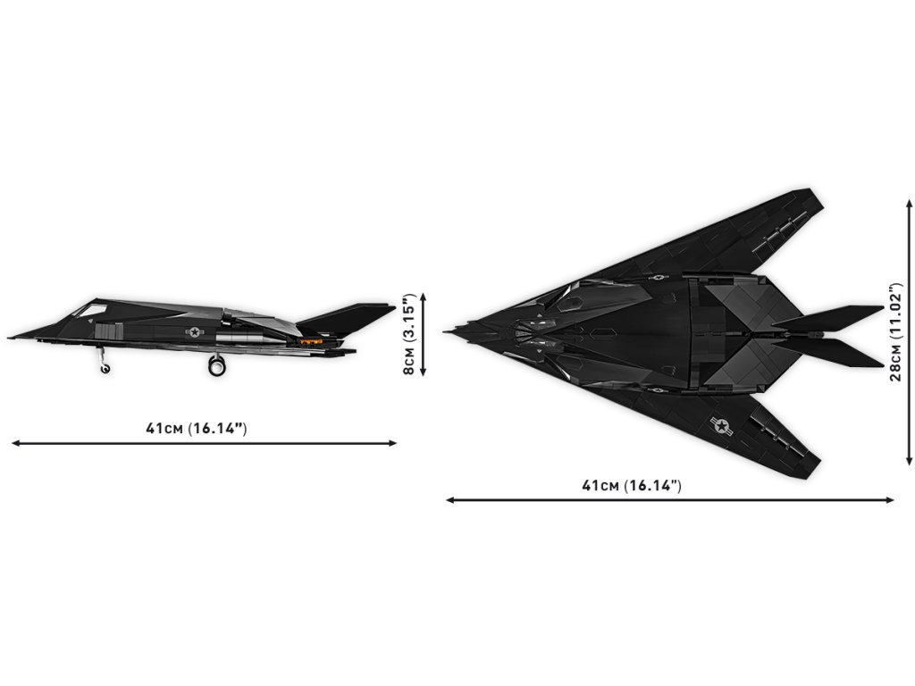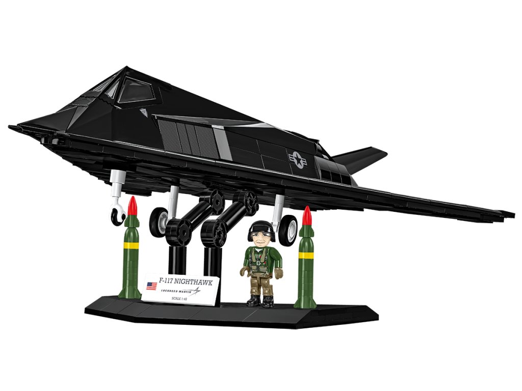 Postavte si model letounu F-117 Nighthawk. Model je v měřítku 1:48 a měří 41 x 8 cm a rozpětí křídel má 28 cm. Má mnoho funkčních částí. Balení obsahuje 795 kostek stavebnice a figurku pilota. Vyrobeno v licenci Lockheed Martin.