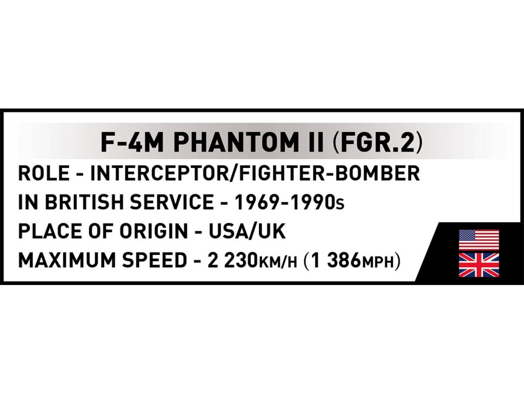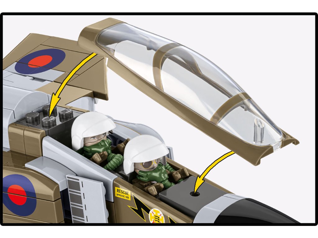 728 prvků – Model vyrobený z vysoce kvalitních kostek stavebnice obsahuje mnoho detailů reprodukujících britskou verzi F-4M, včetně upravených motorů.