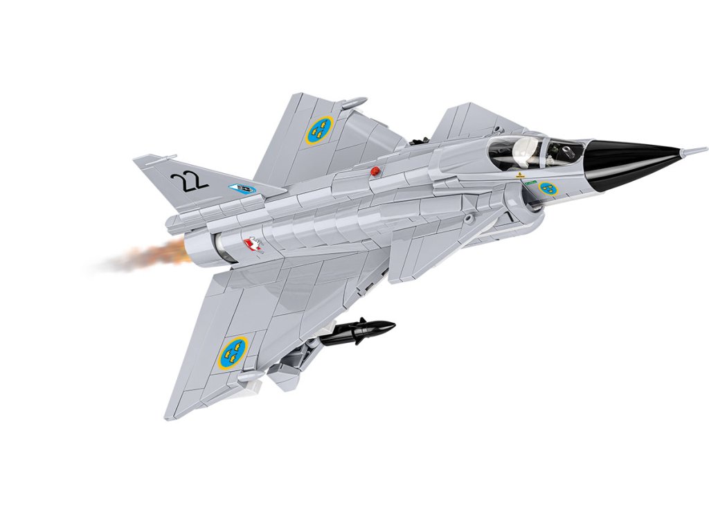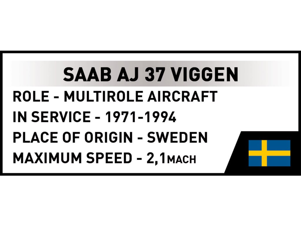 Sada Saab AJ 37 Viggen ("Blesk")! Postavte si model tohoto stíhacího letounu z kostek stavebnice a vytvořte skandinávskou leteckou sílu z doby studené války!