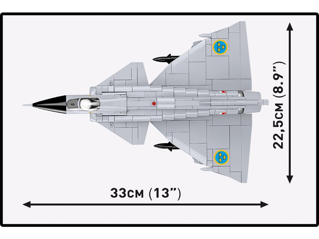 Postavte si model ikonické stíhačky Saab AJ 37 Viggen ("Blesk") z období studené války. Model je v měřítku 1:48, sestavený měří 33 x 12,5 cm a rozpětí křídel má 22,5 cm. Má mnoho funkčních částí. Balení obsahuje 881 kostek stavebnice.