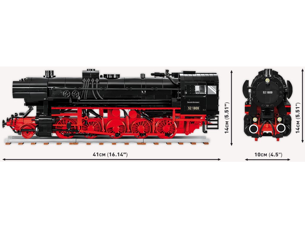 Sada s modelem německé parní lokomotivy DR BR 52 / Ty2 z období 2. světové války je součástí zcela nové kolekce "Vlaky" v nabídce COBI. Konstrukce modelu věrně reprodukuje karoserii, proporce a detaily legendární parní lokomotivy, která je pravděpodobně nejoblíbenější u všech železničních nadšenců.
