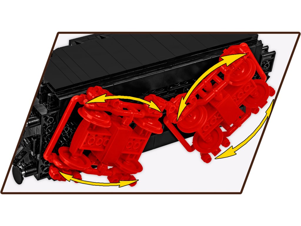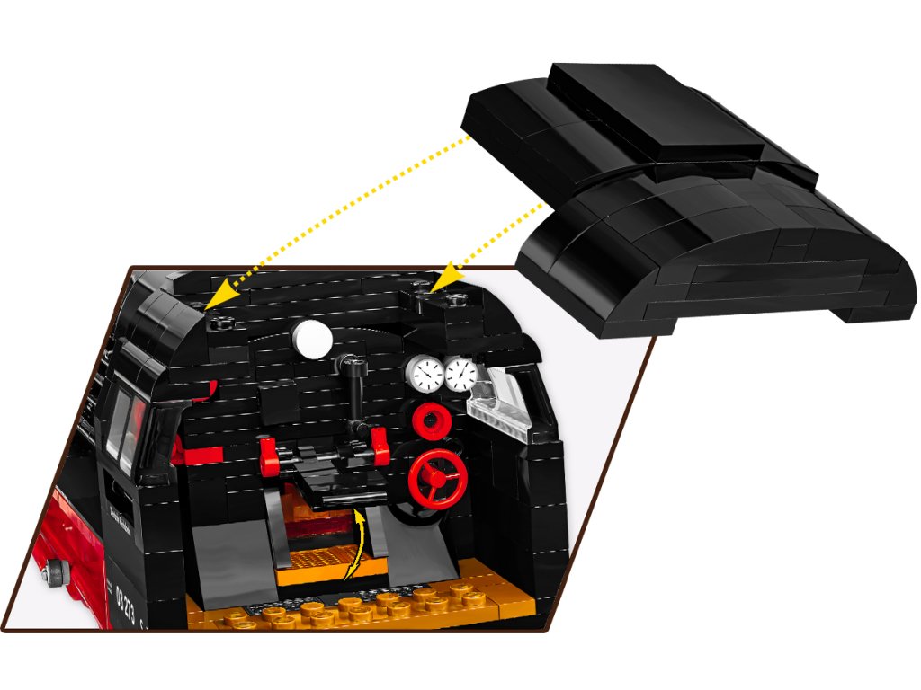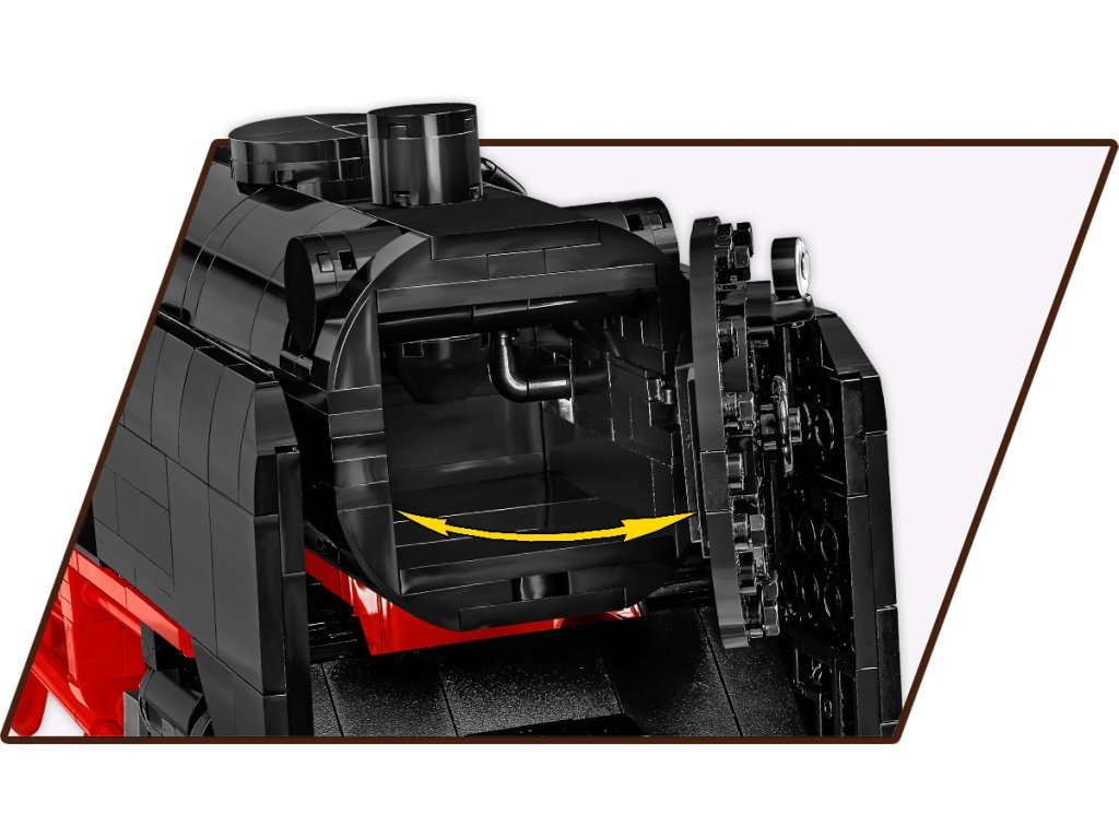 Parní lokomotiva BR03 měří téměř 78 centimetrů a postavíte ji z více než 2700 kostek! Nová velká kola určená pro rychlíkové lokomotivy okamžitě upoutají pozornost. Parní lokomotiva tvarem přesně odpovídá původnímu modelu. Odolná konstrukce dělá lokomotivu těžkou, ale zároveň perfektně funguje. Systém otočných ozubených kol umístěných v rámu roztáčí kola spojená příhradovými nosníky s parním pístem jako u skutečné lokomotivy!