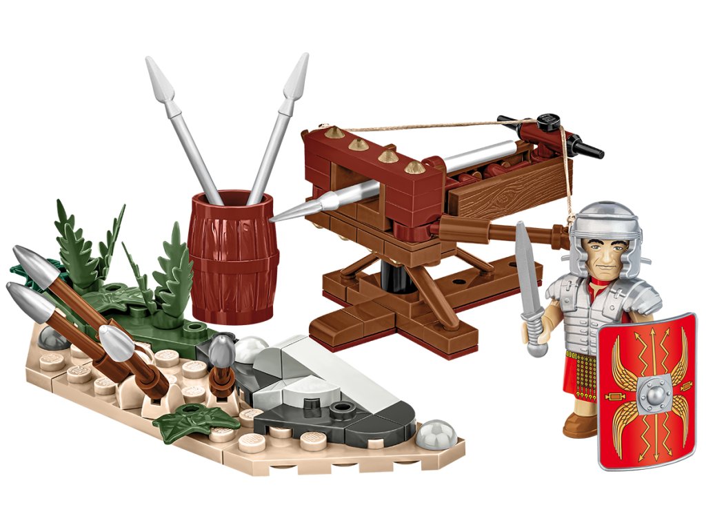 Postavte si věrně reprodukovaný válečný stroj, který rozséval hrůzu mezi nepřáteli Římské říše. Štír byl lehký projektilový stroj, připomínající kuši, určený pro přesnou střelbu. Malý, snadno přepravitelný, přesto smrtící, s dostřelem až 100 m. Balení obsahuje 113 kostek stavebnice a figurku římského legionáře v plné zbroji.